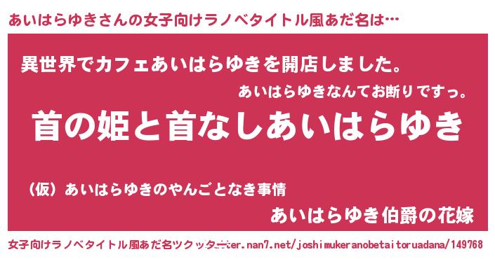 | 男性向けラノベタイトル風あだ名 | 『はたらくあいはらゆきさま!』 |