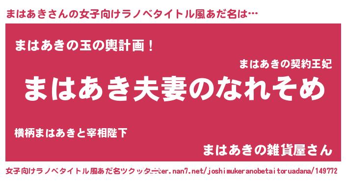 | 男性向けラノベタイトル風あだ名 | 『おまえをオタクにしてやるから、俺をまはあきにしてくれ! 』 |