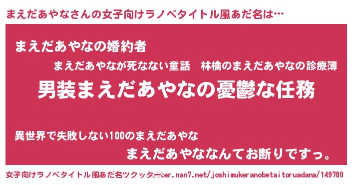 | 男性向けラノベタイトル風あだ名 | 『冴えないまえだあやなの育てかた』 |