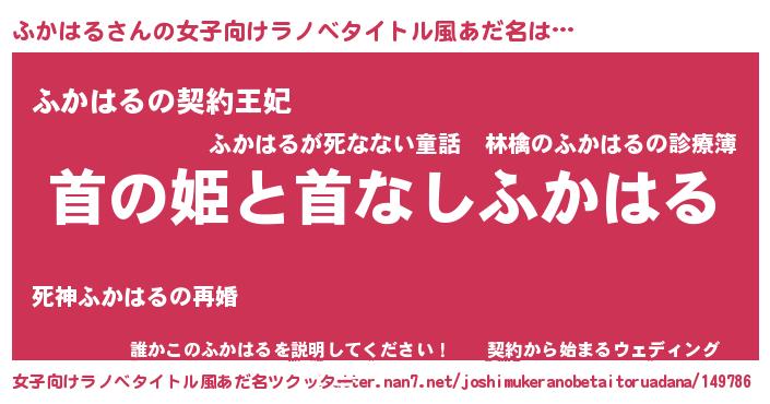 | 胡散臭い通販商品みたいなあだ名 | 『絶対に幸福をもたらす水素水…その名も「ふかはる」』 |
