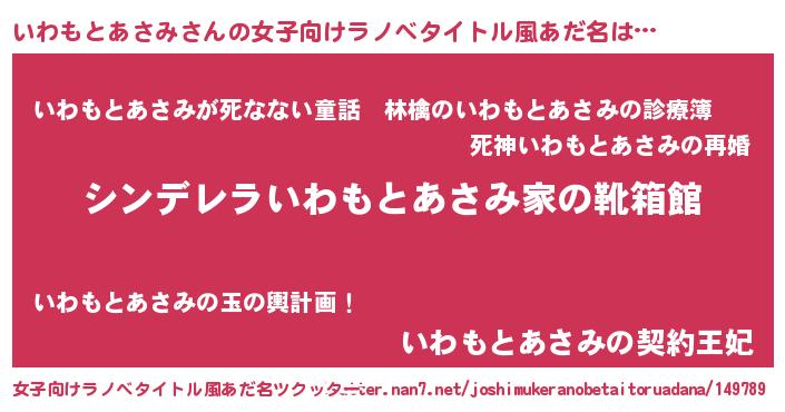 | ヘコむあだ名 | 『いわもとあさみ(苦笑)』『いわお』 |