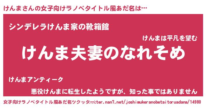 | 意味不明あだ名 | 『眠気覚ましガムけんま味』『自称けんま』 |