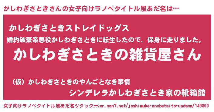 | 男性向けラノベタイトル風あだ名 | 『やはりかしわぎさときの青春ラブコメはまちがっている 』 |