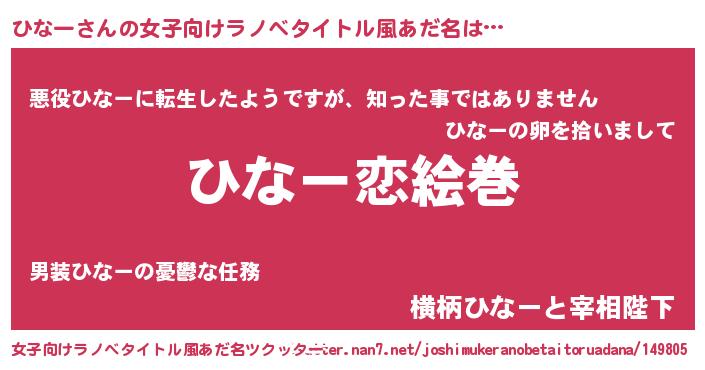 | 男性向けラノベタイトル風あだ名 | 『ノーゲーム・ノーヒナー』 |