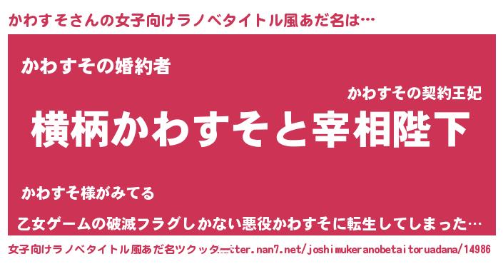 | 胡散臭い通販商品みたいなあだ名 | 『世界が平和になる高級そうな壺…その名も「かわすそ」』 |