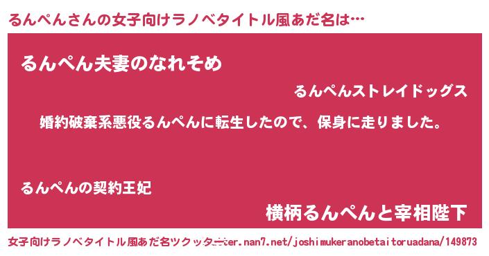 | 男性向けラノベタイトル風あだ名 | 『転生したらるんぺんだった件』 |