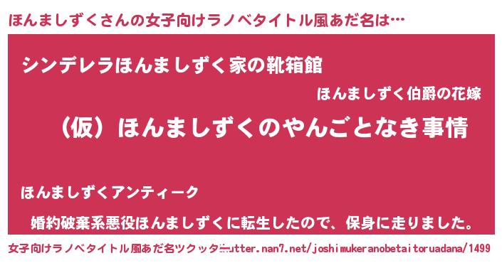 | 胡散臭い通販商品みたいなあだ名 | 『必ず成功する霊験あらたかなお札…その名も「ほんましずく」』 |