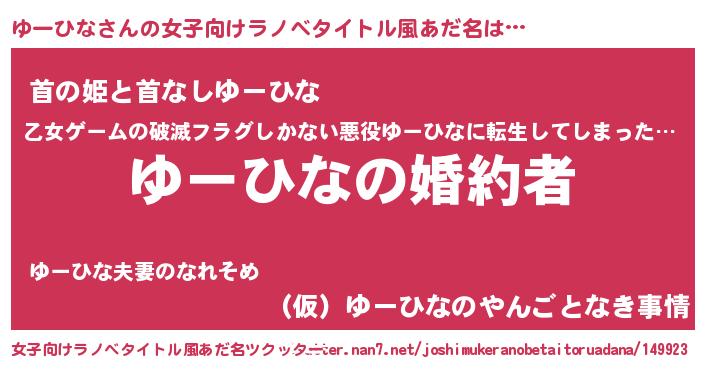 | 胡散臭い通販商品みたいなあだ名 | 『運命の人と巡り会える高級そうな壺…その名も「ゆーひな」』 |