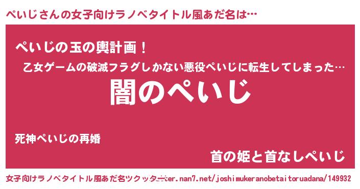 | ヘコむあだ名 | 『ぺいを』『なまこ酢』『ぺいじ(笑)』 |