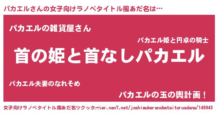 | 男性向けラノベタイトル風あだ名 | 『はたらくパカエルさま!』 |