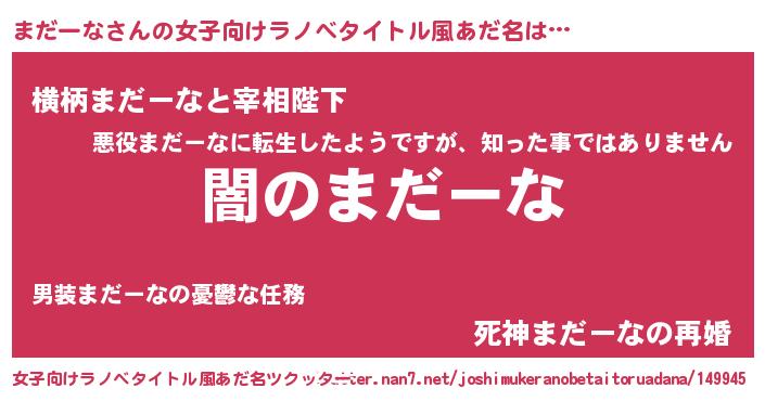 | ヒーロー風カッコイイあだ名 | 『最強戦士マダーナ』『仮面マダダー』 |