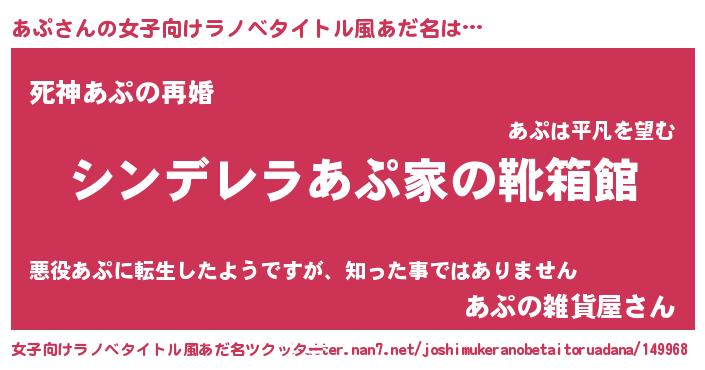 | 男性向けラノベタイトル風あだ名 | 『冴えないあぷの育てかた』 |