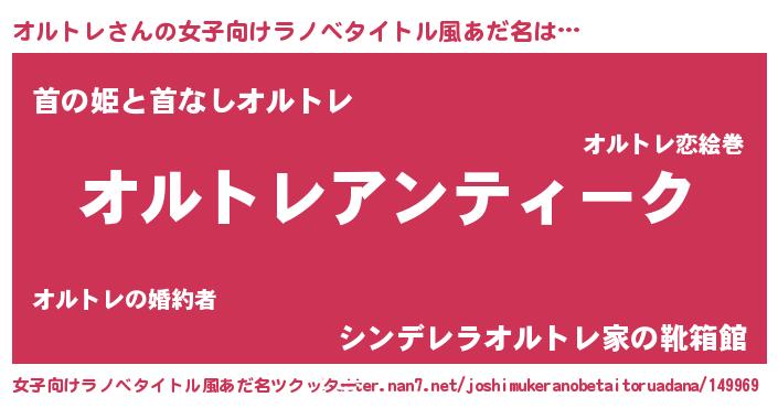 | 男性向けラノベタイトル風あだ名 | 『魔法科高校のオルトレ』 |