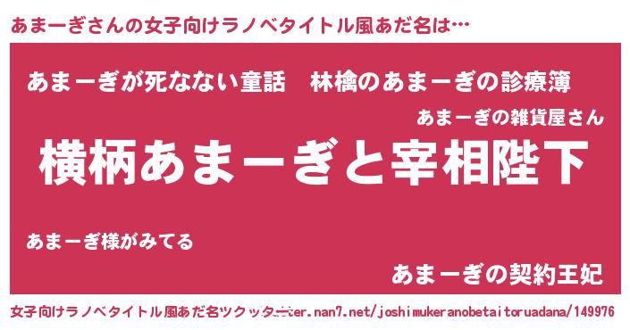 | 男性向けラノベタイトル風あだ名 | 『あまーぎに滅ぼされるだけの簡単なお仕事です』 |
