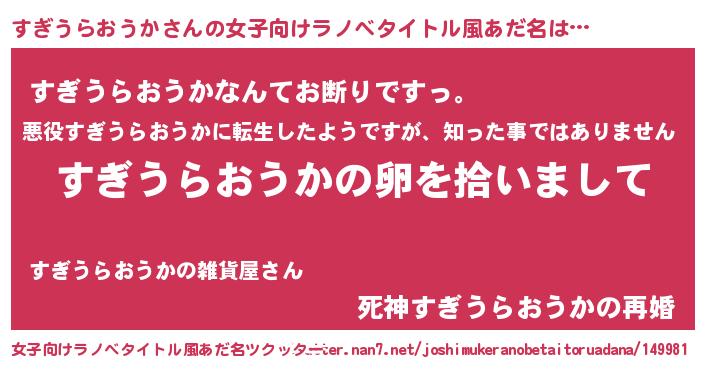 | 男性向けラノベタイトル風あだ名 | 『すぎうらおうかの嫁は女の子じゃないと思った?』 |