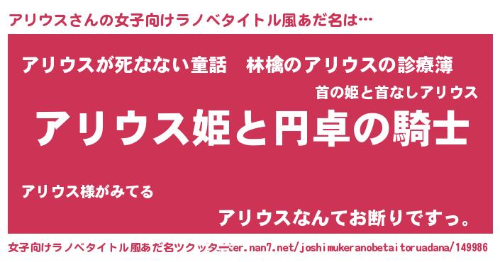 | 胡散臭い通販商品みたいなあだ名 | 『モテモテ間違いなし水晶球…その名も「アリウス」』 |