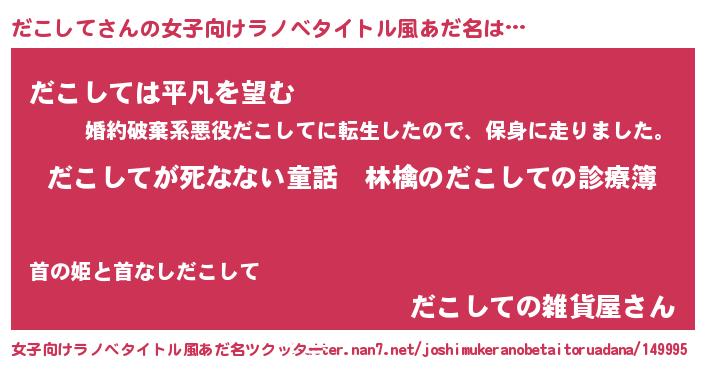 | 男性向けラノベタイトル風あだ名 | 『魔弾の王とだこして』 |