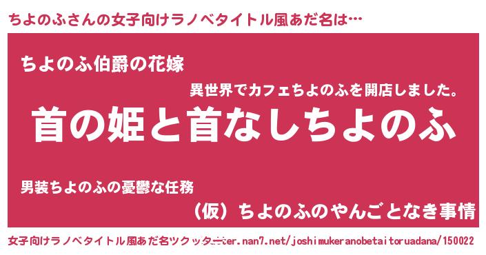 | 意味不明あだ名 | 『ちよのふフォーエバー』『自称ちよのふ』 |