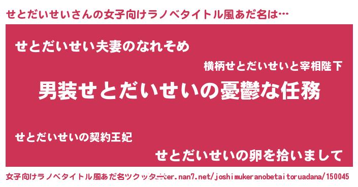 | ヘコむあだ名 | 『せとぷりん』『せとだいせい(遠い目)』 |
