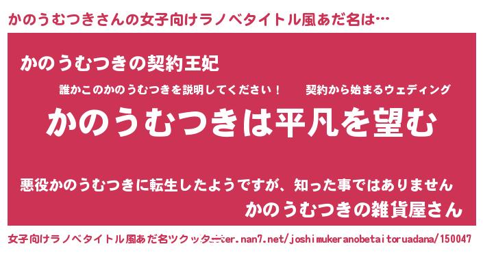 | 胡散臭い通販商品みたいなあだ名 | 『信頼と実績のサプリメント…その名も「かのうむつき」』 |