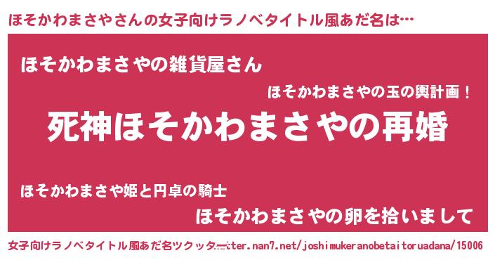 | 肩書あだ名 | 『ほそかわまさや教授』 |