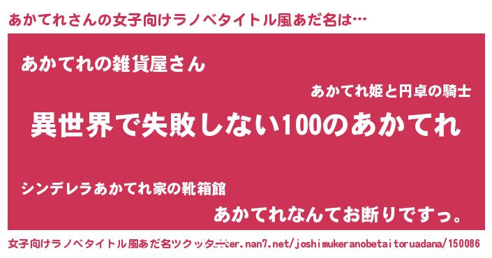 | 男性向けラノベタイトル風あだ名 | 『あかてれという概念が存在しない退屈な世界 』 |