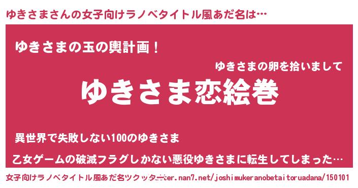| 男性向けラノベタイトル風あだ名 | 『ノーゲーム・ノーユキサマ』 |