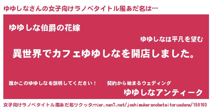 | 胡散臭い通販商品みたいなあだ名 | 『前代未聞の健康食品…その名も「ゆゆしな」』 |