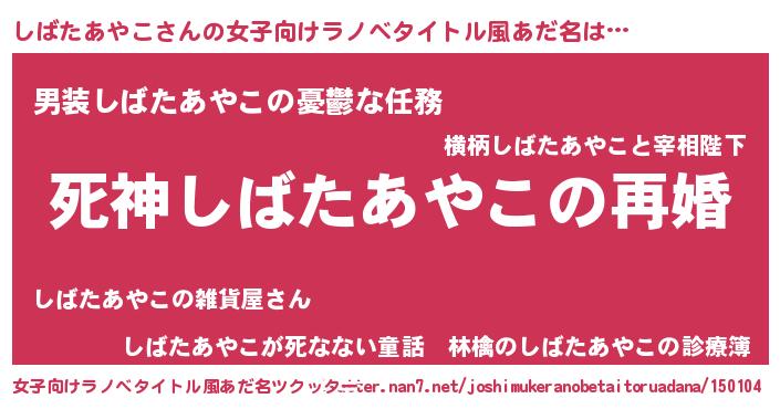 | 男性向けラノベタイトル風あだ名 | 『ノーゲーム・ノーシバタアヤコ』 |