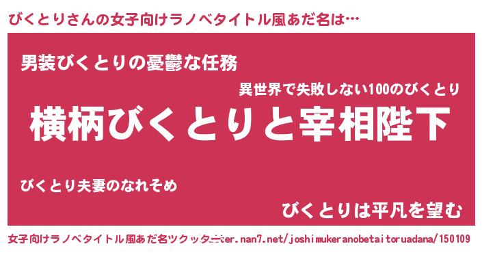 | 男性向けラノベタイトル風あだ名 | 『びくとりに滅ぼされるだけの簡単なお仕事です』 |