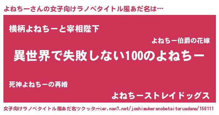 | 男性向けラノベタイトル風あだ名 | 『よねちーという概念が存在しない退屈な世界 』 |