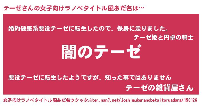 | 男性向けラノベタイトル風あだ名 | 『Re:テーゼから始める異世界生活』 |