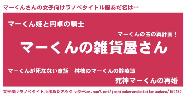 | 男性向けラノベタイトル風あだ名 | 『やはりマーくんの青春ラブコメはまちがっている 』 |