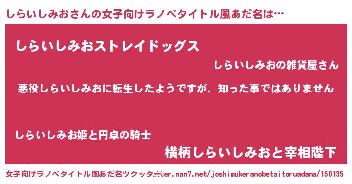 | 男性向けラノベタイトル風あだ名 | 『この素晴らしい世界にしらいしみおを!』 |