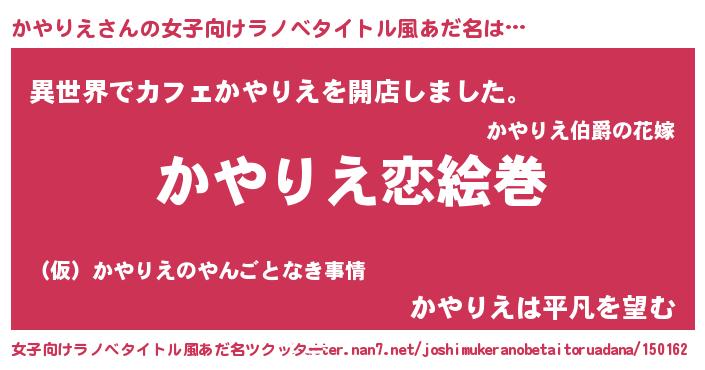 | ヒーロー風カッコイイあだ名 | 『愛の使者かやりえ』『ネオカヤリエ』 |