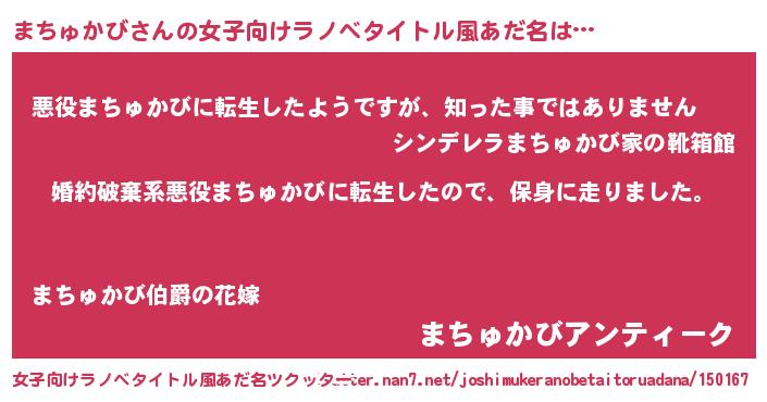 | 男性向けラノベタイトル風あだ名 | 『マチュカビスレイヤー』 |