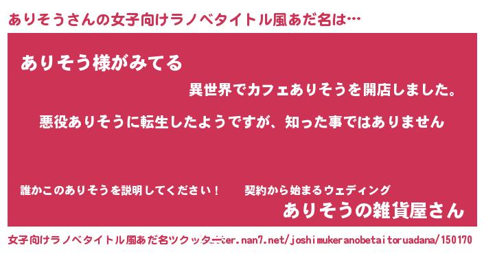 | 胡散臭い通販商品みたいなあだ名 | 『あなたにだけ特別に提供する限定10本のレアな日本酒…その名も「ありそう」』 |