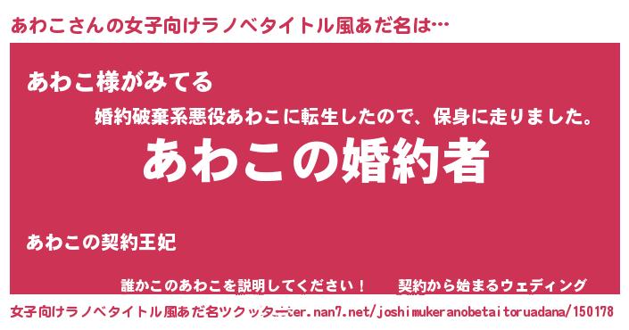 | ヒーロー風カッコイイあだ名 | 『ウルトラあわこマン』『天弓騎士アワ』 |