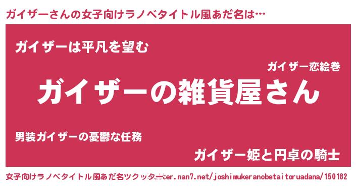 | ファンタジー風あだ名 | 『エターナルガイザーー』『ガイフェル』 |