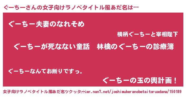| 意味不明あだ名 | 『住所不定無職ぐーちー(40歳)』 |
