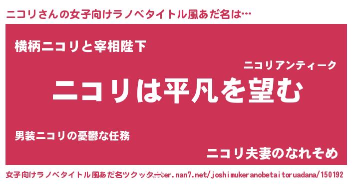| 胡散臭い通販商品みたいなあだ名 | 『信頼と実績のサプリメント…その名も「ニコリ」』 |