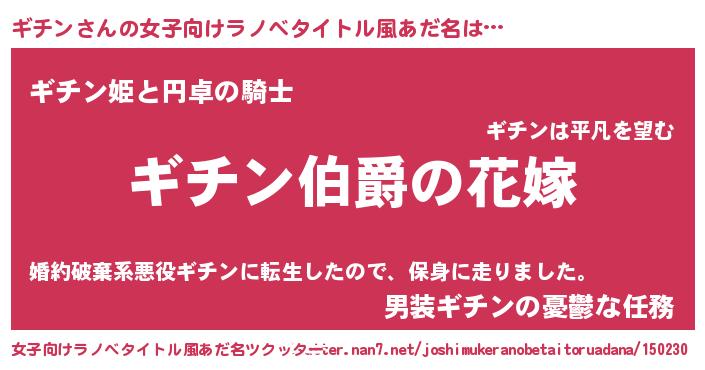| ファンタジー風あだ名 | 『エターナルギチンー』『ギチフェル』 |