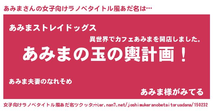 | 恥ずかしいあだ名 | 『アミマデラックス』『アミリンリン』 |