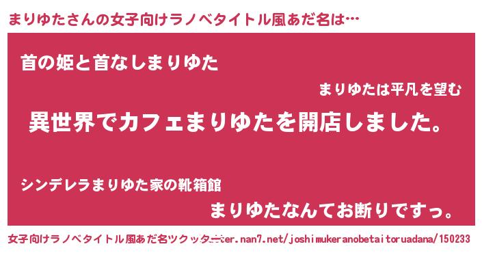 ヘコむあだ名 | 『まりゆた(小並感)』『まり太郎』 |