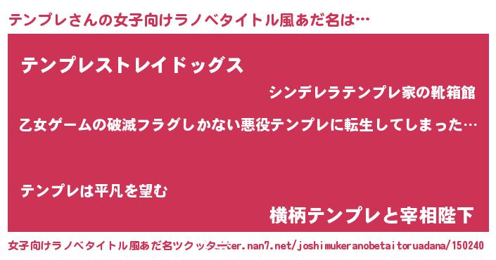 | 意味不明あだ名 | 『住所不定無職テンプレ(47歳)』 |