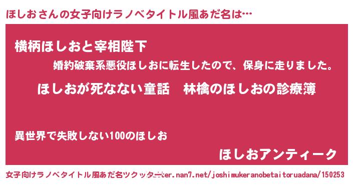 | 意味不明あだ名 | 『住所不定無職ほしお(14歳)』『自称ほしお』 |