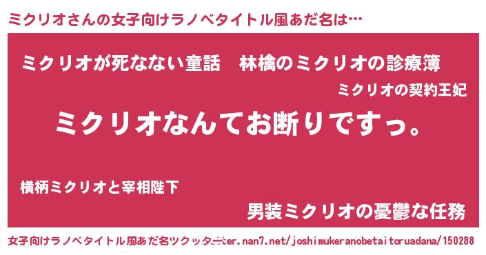 | 意味不明あだ名 | 『自称ミクリオ』『永久保存ミクリオ』 |