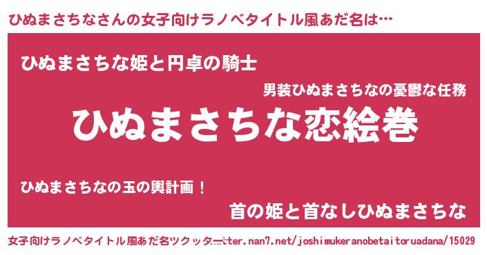 | 男性向けラノベタイトル風あだ名 | 『ノーゲーム・ノーヒヌマサチナ』 |