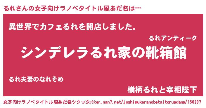 | 男性向けラノベタイトル風あだ名 | 『冴えないるれの育てかた』 |
