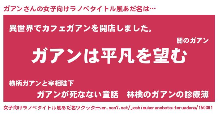 | 胡散臭い通販商品みたいなあだ名 | 『信頼と実績のサプリメント…その名も「ガアン」』 |
